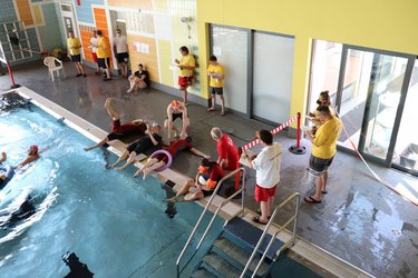 bei SERC (Simulated Emergency Response Competition) wird z.B. im Schwimmbecken (und am Beckenrand) eine Notfallsituation mit mehreren “Verunglückten” dargestellt. Das Ziel ist es, so viele Leben wie möglich zu erhalten. Dabei ist die eigene Sicherheit jederzeit zu beachten.